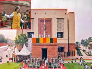 नई दिल्ली: उपराष्ट्रपति जगदीप धनखड़ ने नए सत्र की शुरुआत से एक दिन पहले रविवार को नए संसद भवन के गज द्वार पर राष्ट्रीय ध्वज फहराया. इस मौके पर लोकसभा अध्यक्ष ओम बिरला, केंद्रीय मंत्री प्रह्लाद जोशी, पीयूष गोयल, अर्जुन राम मेघवाल सहित अन्य लोग उपस्थित थे. हालांकि, कार्यक्रम में कांग्रेस प्रमुख और राज्यसभा में विपक्ष के नेता मल्लिकार्जुन खड़गे और पार्टी सांसद राहुल गांधी मौजूद नहीं थे. कार्यक्रम में कांग्रेस सांसद और लोकसभा में विपक्ष के नेता अधीर रंजन चौधरी ने जरूर हिस्सा लिया.