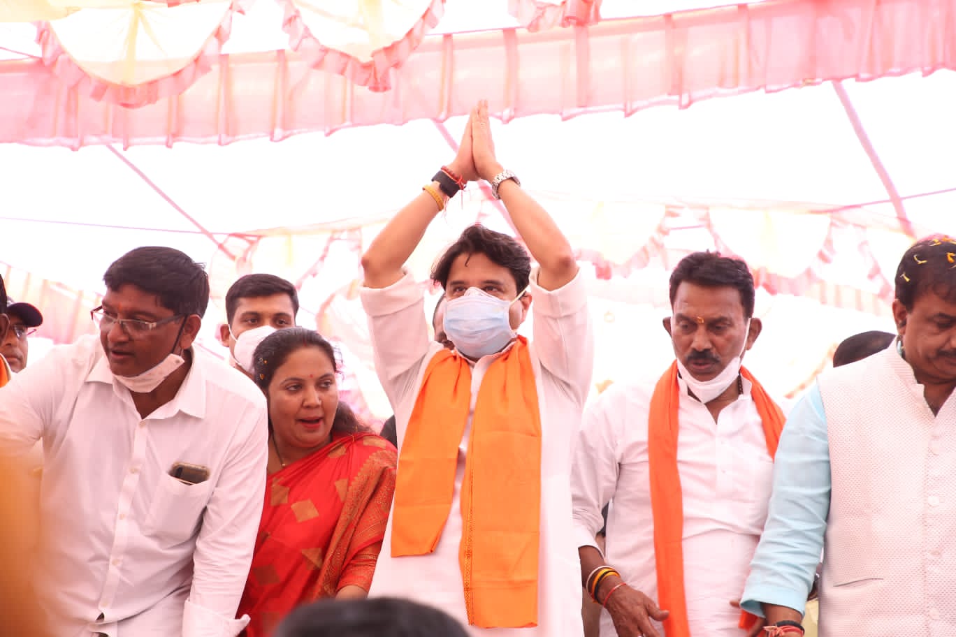 केंद्रीय मंत्री श्री ज्योतिरादित्य सिंधिया ने कहा कि भाजपा सरकार गरीबों को उनका हक देने का कार्य कर रही है। भाजपा सरकार ने कोरोना काल में मध्यप्रदेश में 129 लाख मीटिक टन गेहूं खरीदकर 25 हजार करोड़ रूपए किसान के खातों में डलवाया। ये होती है किसानों की सरकार, जो एक-एक व्यक्ति का ध्यान रखती है। उन्होंने कहा कि प्रधानमंत्री ने किसान सम्मान निधि 6 हजार रूपए शुरू की। इसमें 4 हजार रूपए मुख्यमंत्री श्री शिवराज सिंह चौहान ने भी मिलाकर इसे 10 हजार रूपए सालाना कर दिया। अब किसानों को उनका सम्मान दिया जा रहा है। उन्होंने कहा कि प्रधानमंत्री कहते हैं कि जान है तो जहान है। प्रधानमंत्री ने गरीबों को इलाज के लिए आयुष्मान कार्ड के जरिए 5 लाख तक का इलाज निःशुल्क किया। हर घर में नल-जल योजना के जरिए पानी पहुंचाया जा रहा है।