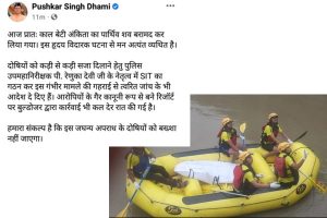 मुख्यमंत्री ने दोषियों को कड़ी से कड़ी सजा दिलाने के लिए पुलिस उपमहानिरीक्षक पी. रेणुका देवी के नेतृत्व में एसआईटी का गठन कर इस गंभीर मामले की गहराई से त्वरित जांच के भी आदेश दे दिए हैं। आरोपियों के गैर कानूनी रूप से बने रिजॉर्ट पर बुल्डोजर द्वारा करवाई भी शुक्रवार देर रात को की गई। धामी ने कहा, “हमारा संकल्प है कि इस जघन्य अपराध के दोषियों को बख्शा नहीं जाएगा।” जनपद पौड़ी गढ़वाल के यमकेश्वर ब्लॉक क्षेत्रांतर्गत गंगा भोगपुर स्थित वंतरा रिसोर्ट में कार्य करने वाली युवती अंकिता भंडारी (19) 18 सितंबर को अचानक लापता हो गई थी। वह डोभ श्रीकोट, यमकेश्वर ब्लॉक, पौड़ी की रहने वाली थी।