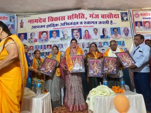गंजबासौदा। नामदेव समाज समिति द्वारा आयोजित भव्य सामुदायिक भवन का लोकार्पण व सामाजिक मिलन समारोह कार्यक्रम आयोजित किया गया। कार्यक्रम के मुख्य अतिथि क्षेत्रीय विधायक लीना संजय जैन मौजूद रही कार्यक्रम में प्रमुख रूप से नामदेव समाज के राष्ट्रीय अध्यक्ष पूर्व राज्यमंत्री दर्जा प्राप्त राजेंद्र नामदेव मौजूद रहे। विशिष्ट अतिथि के रूप में गंज बासौदा नगर पालिका के अध्यक्ष शशि अनिल यादव, जनपद अध्यक्ष नीतू देवेंद्र सिंह रघुवंशी सहित जिला पंचायत सदस्य गण सरपंच पार्षद सहित अन्य जनप्रतिनिधियों की उपस्थिति के साथ भारी संख्या में समाज के लोग मौजूद रहे।