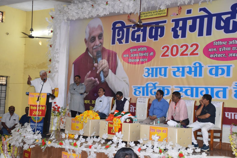 पाटन। विकासखंड के शिक्षक संयुक्त मोर्चा द्वारा *शिक्षक संगोष्ठी*का आयोजन किया गया। संगोष्ठी में मुख्य अतिथि के रूप में विधायक अजय विश्नोई जी तथा विशिष्ट अतिथि के रूप में कलेक्टर इलैयाराजा टी ने सहभागिता ने की। कलेक्टर महोदय ने अपने उद्बोधन में अपनी बचपन की शिक्षा के उदाहरण देते हुए शिक्षको के महत्त्व पर प्रकाश डाला। विधायक विश्नोई जी ने अपने वक्तव्य में अपने छात्र जीवन के संस्मरण सुनाए तथा आदर्श शिक्षक बनने के लिए सभी को प्रेरित किया।