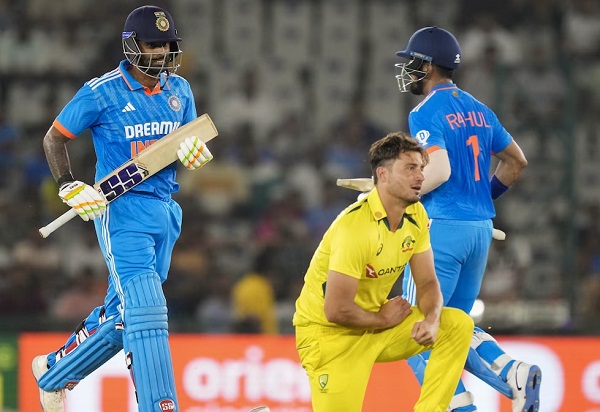 मैदान पर उतरे सूर्यकुमार यादव ने कप्तान राहुल के साथ मिलकर 80 रन की साझेदारी की। और टीम को जीत की दहलीज पर पहुंचा दिया। हालांकि अपना अर्धशतक पूरा करने के बाद सूर्या (50) एबॉट का शिकार बन गए। आखिर में राहुल ने रवींद्र जडेजा के साथ मिलकर आठ गेंद शेष रहते हुए टीम को जीत दिला दी। केएल राहुल 58 रन और जडेजा तीन रन बनाकर नाबाद रहे।