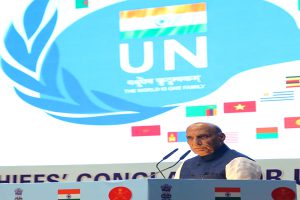 रक्षा मंत्री मंगलवार को नई दिल्ली में आयोजित संयुक्त राष्ट्र शांति सेना योगदानकर्ता देशों के सम्मेलन में बोल रहे थे। इस आयोजन में 32 देशों के सेना प्रमुख व वरिष्ठ सैन्य कमांडर मौजूद थे। यह पहला अवसर है जब भारत इस प्रतिष्ठित सम्मेलन की मेजबानी कर रहा है। राजनाथ सिंह ने कहा कि भारत का विश्वगुरु बनने का सपना वर्चस्व का नहीं, बल्कि साझा और समावेशी विकास का प्रतीक है। उन्होंने कहा कि भारत की अहिंसा और सत्य की परंपरा विश्व शांति निर्माण में नई दिशा दे सकती है। उन्होंने कहा, ”आज कुछ देश अंतरराष्ट्रीय नियमों का खुलेआम उल्लंघन कर रहे हैं। कुछ अपने नियम बनाकर विश्व पर प्रभुत्व जमाना चाहते हैं। ऐसे समय में भारत, नियम-आधारित अंतरराष्ट्रीय व्यवस्था के प्रति प्रतिबद्ध है। गांधीजी की भूमि पर शांति, न्याय, सौहार्द और नैतिक बल की स्थिति है, केवल युद्ध की अनुपस्थिति नहीं।”