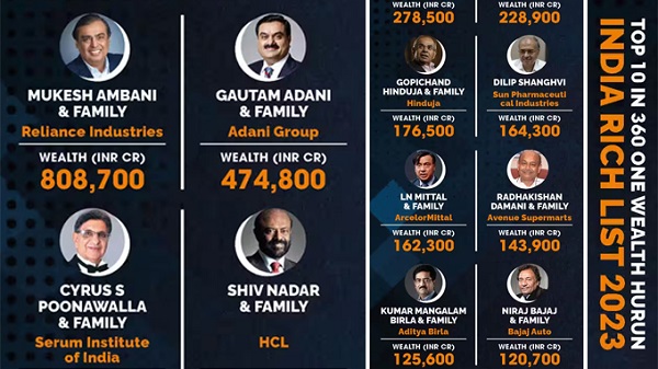 हुरून इंडिया रिच लिस्ट के अनुसार, अभी भारत में 1000 करोड़ रुपये से ज्यादा नेटवर्थ वाले लोगों की संख्या बढ़कर 1,319 हो गई है. हुरून इंडिया रिच लिस्ट 2023 में ऐसे अमीरों की संख्या 216 बढ़ी है. धनकुबेरों के इस क्लब में 278 नए लोग शामिल हुए हैं. ऐसा पहली बार हुआ है, जब भारत में 1000 करोड़ रुपये से ज्यादा दौलत वाले लोगों की संख्या 13 सौ के पार निकली है. बीते 5 साल में ऐसे लोगों की संख्या भारत में 76 फीसदी बढ़ी है.