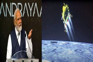 पीएम ने कहा, “आपकी कड़ी मेहनत, साहस, प्रतिबद्धता, जीवन की भावना को सलाम। यह कोई सामान्य सफलता नहीं है। भारत ने अंतरिक्ष की दुनिया में अपनी क्षमता का बिगुल बजा दिया है। भारत चंद्रमा पर है। हमारा राष्ट्रीय गौरव चंद्रमा पर रखा गया है। हम वहां हैं, जहां कोई नहीं है। हमने वो किया है जो पहले नहीं किया था। यह नया भारत है। उन्होंने कहा, “नया भारत नया सोचता है, नई तारीख सोचता है।”