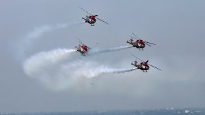 करतब दिखाने के लिए विमानों आगरा, ग्वालियर और गाजियाबाद के हिंडन एयरबेस से उड़ान भरी थी। इसके साथ कुछ विमानों ने भोपाल एयरपोर्ट और हेलीकॉप्टर थ्री ईएमई सेंटर से भी उड़ान भरी। शो में महिला पायलट भी शामिल रहीं। उन्होंने भी सारंग हेलीकॉप्टर की टीम के साथ आसमान में करतब दिखाए। फ्लाई पास्ट में लड़ाकू विमान एसयू-30, मिराज 2000, जगुआर, एलसीए तेजस, हॉक्स, हेलीकॉप्टर चिनूक, एमआई-17 वी5, चेतक, एएलएच और परिवहन विमान सी130 और आईएल 78 शामिल हुए। सूर्यकिरण एरोबेटिक टीम, सारंग हेलीकॉप्टर डिस्प्ले टीम और आकाश गंगा टीम ने भी कार्यक्रम में प्रदर्शन अपना दम दिखाया।