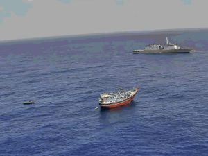 डेस्क: भारतीय नौसेना ने सोमालिया के समुद्री लुटेरों से एक बार फिर पाकिस्तानी मछुआरों की जान बचाई है. लाल सागर में हूती हमलों के बीच सोमालिया के समुद्री लुटेरों ने जहाजों को निशाना बनाना शुरू कर दिया है. शुक्रवार को अरब सागर में भारतीय नौसेना ने ईरान की मछली पकड़ने वाली जहाज अल कामबार 786 और उसके 23 पाकिस्‍तानी चालक दल को बचाया है. इंडियन नेवी ने बताया कि सोकोत्रा के पास 9 हथियारबंद सोमालियाई लुटरों ने ईरानी जहाज पर कब्जा कर लिया था.