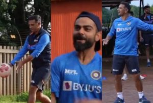 नई दिल्ली। भारतीय क्रिकेट टीम इस वक्त जोहान्सबर्ग में मौजूद है और दक्षिण अफ्रीका के खिलाफ अगले हफ्ते से शुरू होने वाली टेस्ट सीरीज की तैयारियों में जुटी हुई है। कप्तान विराट कोहली और कोच राहुल द्रविड़ की अगुवाई में टीम ने अभ्यास सत्र में हिस्सा लिया और एक नए खेल के जरिए खुद को तैयार किया।