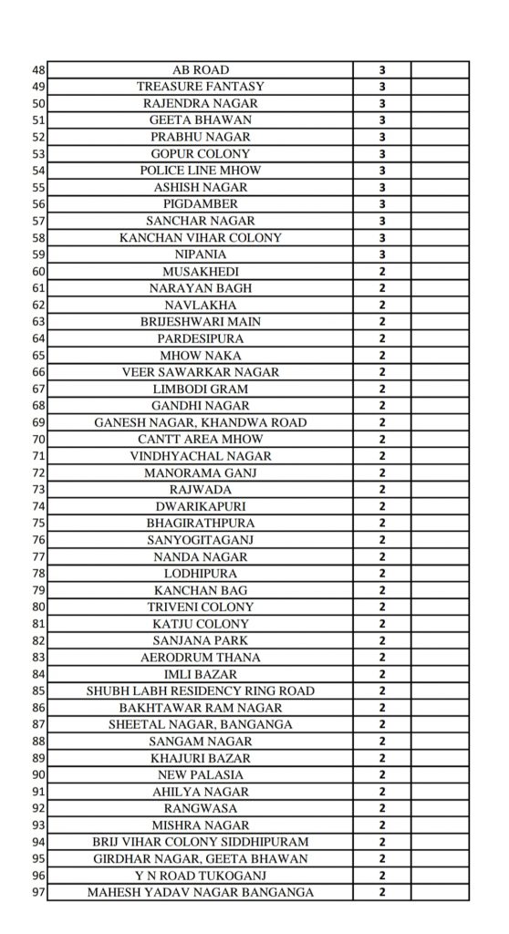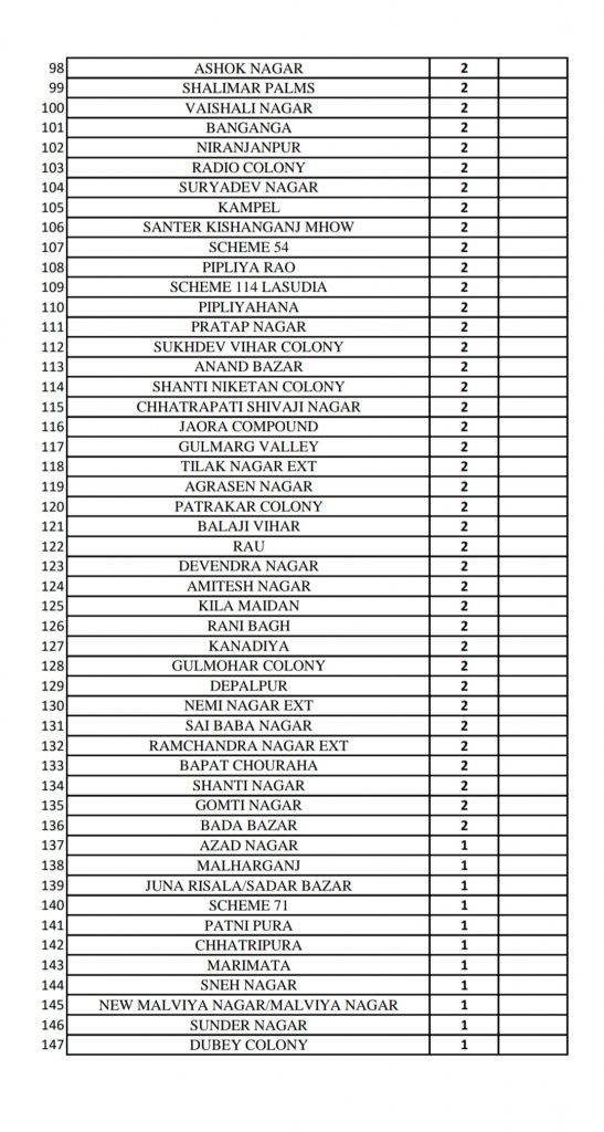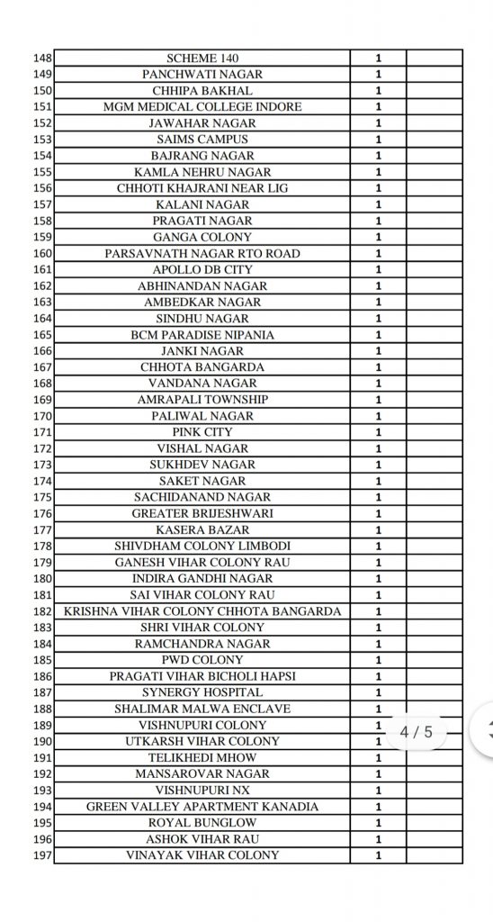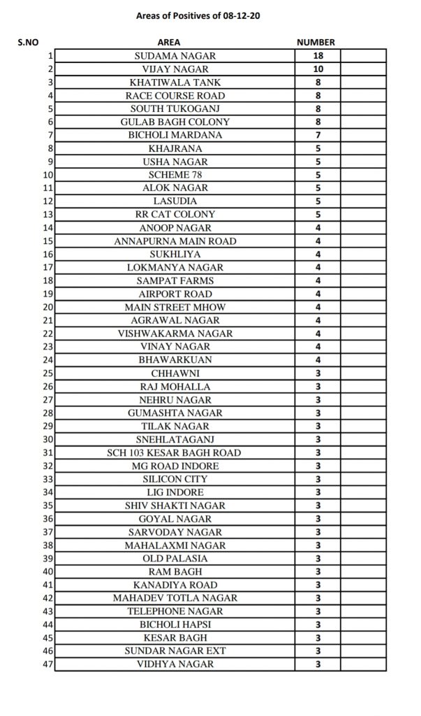 इंदौर 8 दिसम्बर 2020: इंदौर के इन इलाकों मे है कोरोना के मरीज