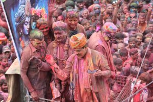 • राजबाड़ा जनता चौक पर हुई बरसाना की लट्ठमार होली, राधाकृष्ण रास