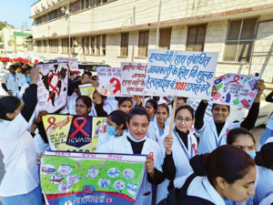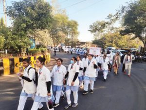 इंदौर : रेड रिबन और हाथों में बैनर-पोस्टर लेकर निकले डॉक्टर और नर्सिंग के छात्र