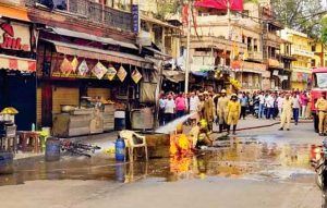 इंदौर। शहर (Indore) के व्यस्ततम राजबाड़ा (Rajwada) पर आज सुबह उस समय भगदड़ (stampede) मच गई, जब महालक्ष्मी मंदिर (Mahalakshmi Temple) के पास वाली लाइन में स्थित दुकान में आग लग गई। हालांकि आग पर तत्काल काबू पा लिया गया। बॉम्बे हॉस्पिटल के सामने तडक़े एक गुमटी में आग लगने की घटना हुई।