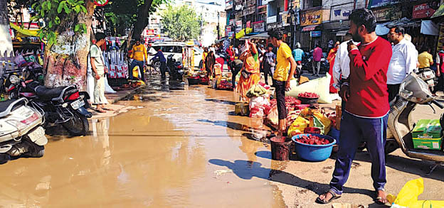 • निगम ने बिगाड़ी गरीबों की दिवाली, पाइप लाइन फूटी, राजबाड़ा की सडक़ों पर पानी ही पानी