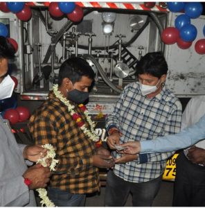 स्वागत के बारे में पूछे जाने पर ड्राइवर ने कहा, “हम पिछले दो घंटों से यहां हैं “मैंने पूरे रास्ते पलक तक नहीं झपकाई ,हम जानते हैं कि कोविड के समय ऑक्सीजन कितनी महत्वपूर्ण है ऐसे में टैंकर को सबसे पहले भाजपा कार्यकर्ताओं द्वारा चंदन नगर चौराहे पर रोका गया, जिसका नेतृत्व स्थानीय अध्यक्ष गौरव रणदिवे ने किया।
