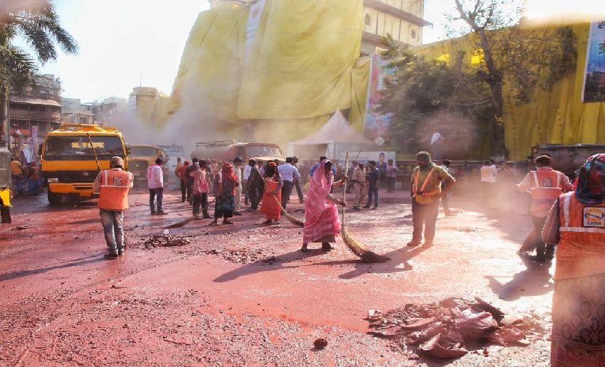 गेर के बाद नगर निगम की टीम बड़ी-बड़ी मशीनों के साथ पहुंची और रंग, रास्तों से कपड़ों, पैकेटों, गुब्बारों, पिचकारियों को उठाना शुरू कर दिया, जबकि नगर निगम की झाड़ू टीम ने पूरे इलाके में झाड़ू लगाना शुरू किया और शहर को साफ किया. गेर के चलते पूरी सड़कें गुलाल और पानी से भर गई थी, ऐसे में नगर निगम की टीम ने पहले इन सड़कों से रंग हटाया और उसके बाद इन सभी सड़कों को नगर निगम के टैंकरों से पानी के जरिए फिर से धोया, जिससे सड़कें चकाचक हो गई.