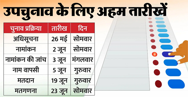 • उपचुनाव: पंजाब समेत चार राज्यों की पांच विधानसभा सीटों के लिए उपचुनाव का एलान; 19 जून को मतदान, 23 को नतीजे