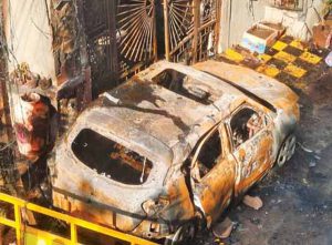 इंदौर। रात के तीन-साढ़े तीन बजे के दरमियान बंगाली चौराहे (Bengali Square) के पास स्थित बृजेश्वरी एनेक्स (Brijeshwari Annex) के एक घर में लगे इलेक्ट्रिक कार चार्जर (Electric Car Charger) के फटने से लगी आग ने समीप रखे गैस सिलेंडरों (Gas cylinders) को आग के दावानल में बदल दिया और पूरा इलाका धमाकों की आवाज से गूंज उठा। एक के बाद एक चार सिलेंडरों में लगी आग से न केवल मकान का एक हिस्सा ढह गया, बल्कि अंदर सो रहे लोगों को भी संभलने का मौका तक नहीं मिला और देखते ही देखते पुगलिया परिवार के 8 लोगों की मौत हो गई और 4 गंभीर रूप से जुलस गए। मरने वालों में एक बच्चा भी शामिल है। जिस घर में आग लगी उस घर के रिश्तेदार राठी परिवार के लोग भी ठहरे हुए थे, जिनमें से कई लोग इस हादसे का शिकार हो गए। धमाके और आग लगने के बाद इन लोगों ने घर से निकलने की कोशिश भी की, लेकिन इलेक्ट्रानिक दरवाजा होने के कारण घर का द्वार नहीं खुल सका और कोई भी जिंदा बाहर नहीं निकल सका। धमाके की आवाज सुनकर आसपास के लोग एकत्रित हुए और फायर ब्रिगेड तथा पुलिस को सूचना दी। पड़ोस के मकान की छत के रास्ते रेस्क्यू टीमें घर में घुसीं और एक-एक कर लोगों को निकाला और एंबुलेंस की मदद से एमवाय अस्पताल पहुंचाया।