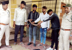 इंदौर। टाइगर स्ट्राइक फोर्स (Tiger Strike Force) और इंदौर (Indore) वन विभाग (Forest Department) ने लगातार 2 दिन में संयुक्त कार्रवाई कर दो मुंहे 2 सांपों (two-headed snakes) की तस्करी करने वाले 4 आरोपियों (4 arrested) को गिरफ्तार कर कोर्ट में पेश किया। वन विभाग के अधिकारियों के अनुसार पहले दिन 2 तस्करों को पकड़ा था।