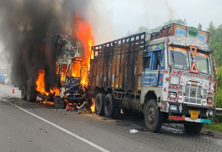 • MP : गणपति घाट पर ट्राले से टकराया कंटेनर, लगी आग, 3 किलोमीटर तक लगा लंबा जाम