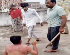 इंदौर। एक महिला (woman) से बात (talking) करने की शंका पर महिला के रिश्तेदारों (Relatives) ने एक युवक (young man) को छत पर ले जाकर उसकी शर्ट उतरवाई और उस पर जमकर लाठियां (sticks) चलाईं। वह मदद के लिए गिड़गिड़ाता रहा, लेकिन लाठियां बरसाने वाले उस पर तरस नहीं खा रहे थे। पुलिस (Police) के पास इस घटना का वीडियो वायरल होकर पहुंचा तो पुलिस ने आरोपियों पर कार्रवाई कर उन्हें गिरफ्तार कर लिया। इस मामले में पहले पुलिस ने उस युवक को ढूंढा, जिसके साथ मारपीट की गई।