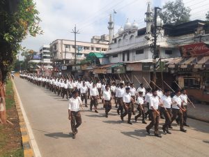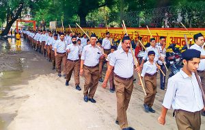 अपनी स्थापना के 100 साल पूरे कर स्वर्णिम हुए संघ ने आज अपने हजारों स्वयंसेवकों के साथ एक बार फिर गजब के अनुशासन और कदमताल का अद्भुत नजारा दिखाया। खाकी और सफेद रंगों का संयोजन एक अलग ही दृश्य पैदा कर रहा था। सडक़ें रंगोली से सजी हुई थीं। स्वयंसेवकों के मस्तक पर तिलक लगाए जा रहे थे। स्वयंसेवक देशप्रेम के नारे लगा रहे थे। ऐसा लग रहा था, मानो पूरा शहर दशहरे और दीपावली के दो महापर्वों के बीच राष्ट्रभक्ति, संस्कृति का उत्सव मना रहा है। शहर की हर गली, हर चौराहा, हर इलाका स्वयंसेवकों की मौजूदगी के साथ इस उत्सव में चार चांद लगा रहा था। संगठन गढ़े चलो सुपंथ पर बढ़े चलो इस गीत के साथ आज शहर में एक साथ 34 स्थानों पर पथ संचलन निकले।