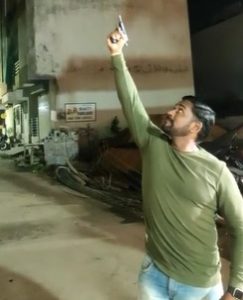 फरियादी ने पुलिस को बयान दिए की वह एक सरकारी बैंक में नौकरी करता है। गोली चलाने वाला व्यक्ति विजय कुमार पटेल आए दिन इलाके में अपने अवैध बंदूक से हर्ष फायरिंग कर इलाके में दहशत का माहौल बनाता है। वहीं अपनी गाड़ी पर पुलिस का स्टीकर लगाकर वह अपने आप को पुलिस का व्यक्ति बताता है। आए दिन वह इलाके के लोगों से विवाद भी करता रहता है।
