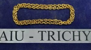 त्रिची। एयर इंटेलीजेंस यूनिट ने त्रिची एयरपोर्ट पर एक पुरुष यात्री से 120 ग्राम सोने की चेन बरामद की है। बता दें कि यात्री अपनी गुदा में छिपाकर यह चेन भारत लाया था लेकिन एयर इंटेलीजेंस यूनिट की नजरों से बच नहीं सका। आरोपी यात्री दुबई से गुरुवार को लौटा था। एयरपोर्ट पर चेकिंग के दौरान एयर इंटेलीजेंस यूनिट को उस पर कुछ शक हुआ, जिसके बाद उसकी सघनता से जांच की गई। जांच में उसकी गुदा से 24 कैरेट सोने की 120 ग्राम वजनी सोने की चेन बरामद हुई। इस चेन की कीमत करीब छह लाख रुपए है।