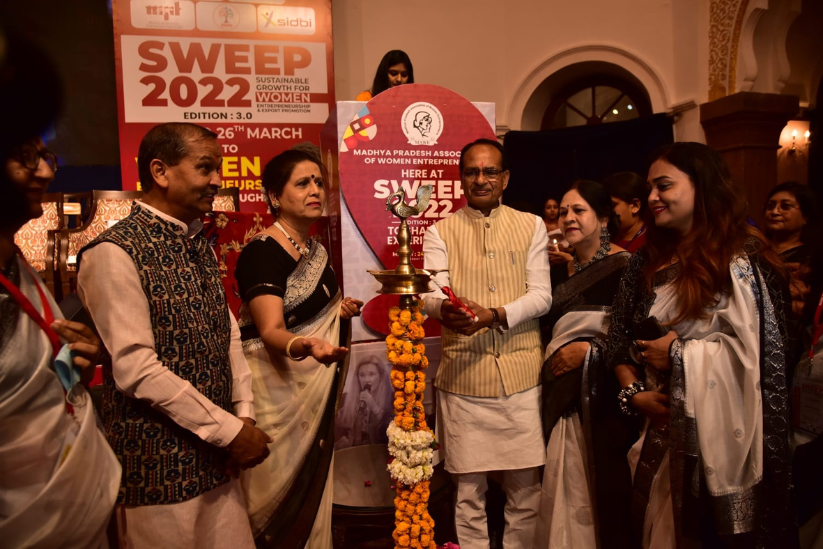 मावे द्वारा आयोजित स्वीप- 2022 को एमएसएमई मंत्रालय (भारत सरकार), एमएसएमई मंत्रालय (मध्य प्रदेश सरकार), मध्य प्रदेश राज्य औद्योगिक विकास निगम लिमिटेड, मध्यप्रदेश टूरिज्म एवं अन्य के सहयोग से आयोजित किया जा रहा है। यह सम्मेलन कुशाभाऊ ठाकरे हॉल (मिंटो हॉल) में आयोजित किया जा रहा है। मध्य प्रदेश के मुख्यमंत्री शिवराज सिंह चौहान ने अपने उद्बोधन में कहा कि च्च्इस अदभुत आयोजन के लिए मावे टीम को धन्यवाद देना चाहता हूं । मध्यप्रदेश, महिला शक्तिकरण की एक प्रयोग शाला बन चुकी है महिलाएं अब हर क्षेत्र में अपने सफलता हासिल कर रही है। आर्थिक सहशक्तिकरण महिलाओं से बेहतर कोई नहीं कर सकता। सूक्ष्म, लघु और मध्यम उद्योग मंत्री ओम प्रकाश सकलेचा ने कहा कि महिलाओं के लिए मैं बस इतना ही कहना चाहूंगा की जो घर को मैनेज कर सकती है वह पूरी दुनिया को मैनेज कर सकती है। च्च्मावे की अध्यक्ष अर्चना भटनागर ने अपने उद्बोधन में कहा कि मैं हमारे मुख्यमंत्री की आभारी हूँ कि उन्होंने एमएसएमई महिला उद्यमियों के लिए मध्य प्रदेश में एक नई सोच बनाई है। उन्होंने महिला उद्धमियों को आगे बढ़ाने की जो बात कही है वह एक बहुत ही सराहनीय कदम है।