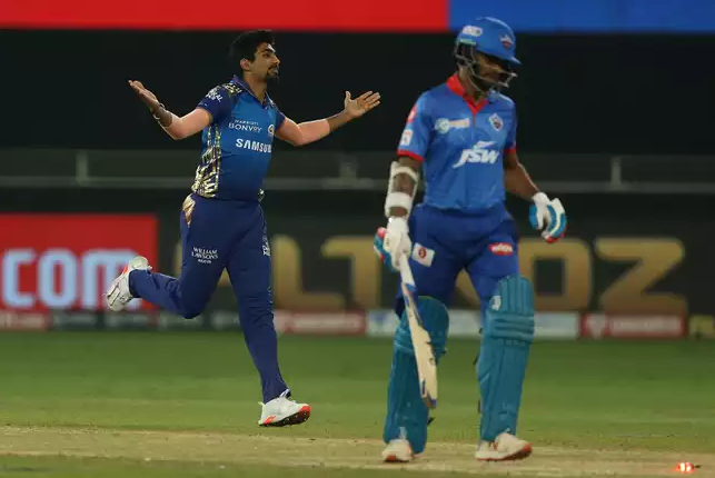 स्टोयनिस ने 46 गेंदों पर छह चौकों और तीन छक्कों की मदद से 65 रन बनाए। इसके बाद डेनियल सैम्स भी बिना खाता खोले आउट हो गए। अक्षर पटेल का विकेट भी 141 रन के स्कोर पर गिर गया। उन्होंने 33 गेंदों पर दो चौकों और तीन छक्कों की मदद से 42 रन की पारी खेली। इसके अलावा कसिगो रबाडा ने नाबाद 15 रन बनाए। दिल्ली की टीम 20 ओवर में माज्ञ 143 रन ही बना सकी और यह मैच मुम्बई ने 57 रन से जीत लिया। मुम्बई की तरफ से बुमराह ने चार ओवर में मात्र 14 रन देकर चार विकेट लिए। उन्हें मैन आफ द मैच चुना गया। इसके अलावा ट्रेंट बोल्ट ने दो, क्रुणाल पांड्या ने एक और कीरोन पोलार्ड ने एक विकेट अपने नाम किया।