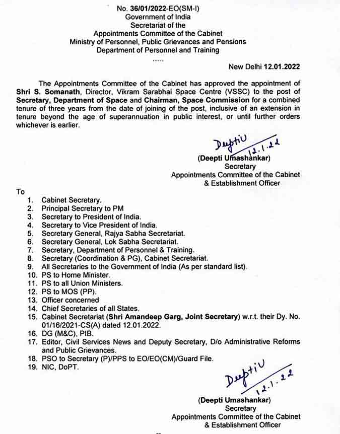 नई दिल्ली । विक्रम साराभाई स्पेस सेंटर (VSSC) के निदेशक और इसरो के प्रमुख वैज्ञानिक एस. सोमनाथ (S. Somanath) भारतीय अंतरिक्ष अनुसंधान संगठन (ISRO) के नए चीफ बनाए गए हैं. तिरुवनंतपुरम स्थित VSSC के डायरेक्टर एस. सोमनाथ देश के बेहतरीन रॉकेट टेक्नोलॉजिस्ट और एयरोस्पेस इंजीनियर हैं.