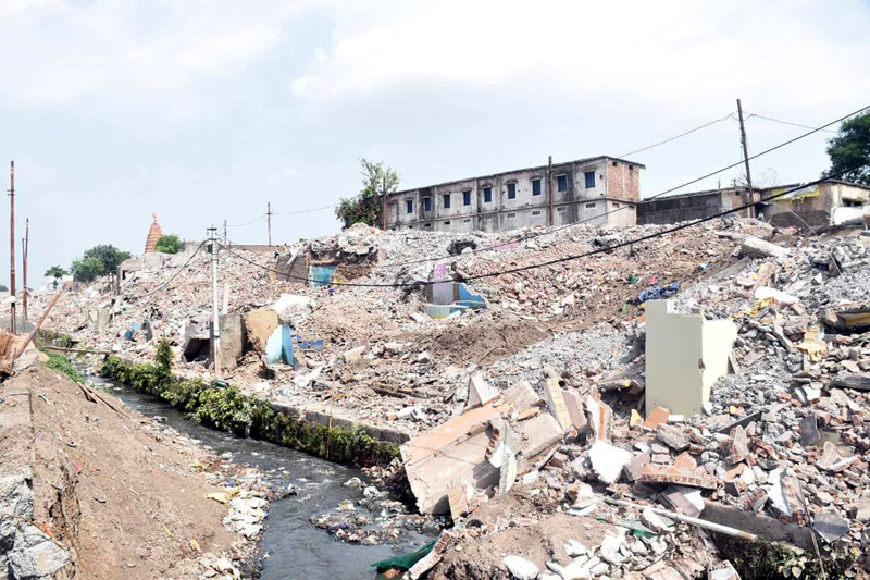 उज्जैन। बेगमबाग बस्ती के सभी 147 मकानों को रविवार शाम तक तोड़ दिया गया था। इसके साथ ही यहाँ मलबा हटाने और समतलीकरण शुरु करने की बात अधिकारियों ने कही थी। अभी भी आधे से ज्यादा क्षेत्र में टूटे मकानों के मलबे के ढेर लगे हुए हैं। खाली हुई जमीन के कुछ भाग में समतलीकरण कर शुरु हो गया है। पूरी तरह समतलीकरण में 2 से 3 दिन लग जाएँगे।