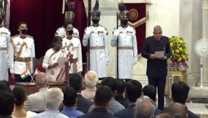 नई दिल्ली: पश्चिम बंगाल के पूर्व राज्यपाल जगदीप धनखड़ आज देश के 14वें उपराष्ट्रपति बन गए हैं. उन्हें महामहिम राष्ट्रपति द्रौपदी मुर्मू पद और गोपनीयता की शपथ दिलाई. राष्ट्रपति भवन में आयोजित शपथ ग्रहण समारोह में प्रधानमंत्री सहित सभी बड़े नेताओं की उपस्थिति में जगदीप धननखड़ ने उपराष्ट्रपति पद की शपथ ली.