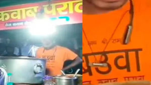 यह पूरी घटना कानपुर के गुजैनी थाना इलाके के रामगोपाल चौराहे की है. यहां एक युवक वेज कबाब पराठा बेच रहा था. उसके ठेले पर बजरंग दल के कुछ कार्यकर्ता कबाब पराठा खाने पहुंचे थे. इस दौरान युवक ने एक भगवा टी-शर्ट पहन रखी थी, उस पर बउवा के ऊपर जय श्रीराम भी लिखा था. रिपोर्ट के मुताबिक बातचीत के दौरान जब नाम पूछा गया तो दुकानदार ने आनाकानी शुरू की. बजरंग दल के कार्यकर्ताओं के दबाव बनाने पर उसने अपना नाम मोहम्मद कल्लू बताया.