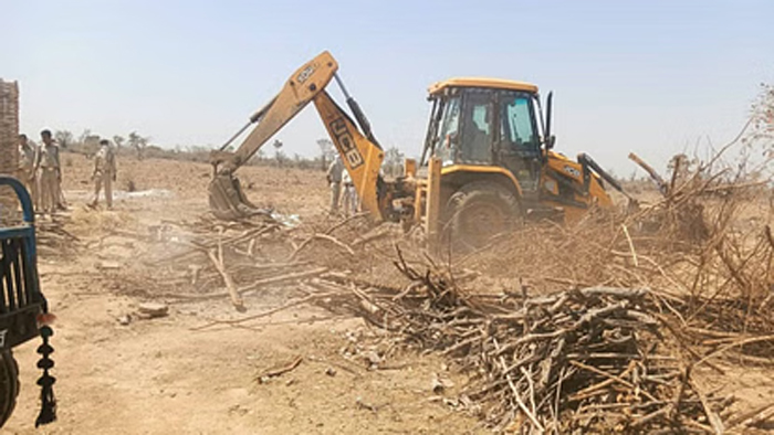 श्योपुर। श्योपुर जिले (Sheopur District) में वन विभाग (Forest Department) की भूमि (Land) पर किए गए अतिक्रमण (Encroachment) को हटाने के लिए वन विभाग की तीन रेंज की टीम ने पुलिस की मदद से संयुक्त रूप से कार्रवाई करते हुए बुलडोजर (Bulldozers) चलाकर अस्थाई अतिक्रमण से मुक्त कराई है। विजयपुर वन परिक्षेत्र पूर्व की नितिनवास एवं खुरजान बीट क्षेत्र में डेढ़ दर्जन से अधिक लोगों ने जंगल में खेती करने की नीयत से जंगल के हरे-भरे पेड़ों को काटकर यहां पर अस्थाई रूप से झोपड़ी बना ली थी, जिसकी जानकारी बीट प्रभारियों को गस्त के दौरान लगी।