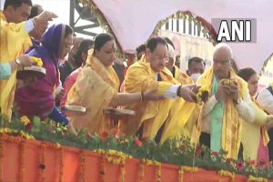 अयोध्या । भाजपा शासित राज्यों (BJP ruled states) के मुख्यमंत्रियों (Chief Ministers) के साथ भाजपा के राष्ट्रीय अध्यक्ष जे.पी. नड्डा (JP nadda) ने अयोध्या (Ayodhya) में सरयू घाट (Saryu Ghat) पर पूजा की (Worshiped) ।