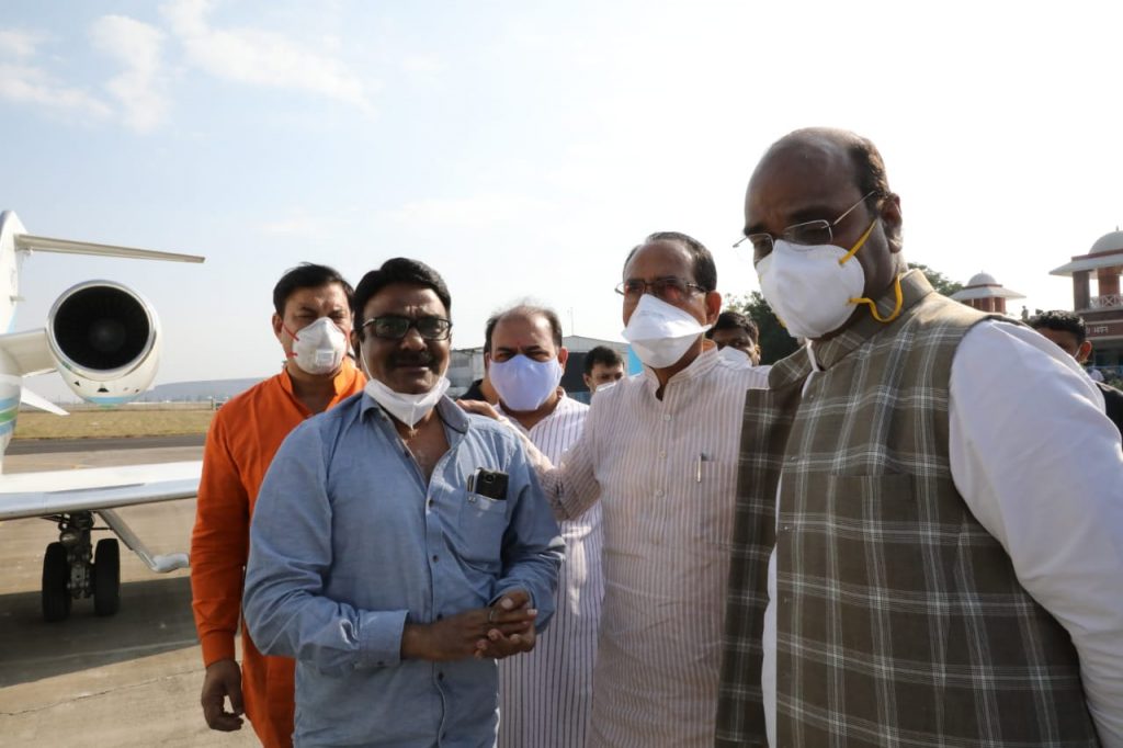 भोपाल । मध्य प्रदेश भाजपा के वरिष्ठ नेता कैलाश नारायण सारंग का पार्थिव शरीर रविवार सुबह विमान से भोपाल पहुंचा। यहां मुख्यमंत्री शिवराज सिंह चौहान ने दिवंगत नेता स्वर्गीय कैलाश सारंग का पार्थिव शरीर को स्टेट हैंगर भोपाल पहुंचने पर श्रद्धांजलि अर्पित की। मुख्यमंत्री ने स्वर्गीय कैलाश सारंग के दोनों बेटों विवेक सारंग और विश्वास सारंग के साथ ही सारंग परिवार के शोकाकुल सदस्यों को ढाढस बंधाया।