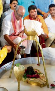 इंदौर। आज सुबह इंदौर (Indore) पहुंचे प्रदेश कांग्रेस (Congress) के मुखिया और पूर्व मुख्यमंत्री कमलनाथ (Kamal Nath) विधायक संजय शुक्ला (Sanjay Shukla) द्वारा बाणेश्वर कुंड (Baneshwar Kund) पर आयोजित 3100 जोड़ों द्वारा किए जा रहे रूद्राभिषेक (Rudrabhishek) कार्यक्रम में शामिल हुए। उन्होंने 09.55 से 10 बजकर 6 मिनट तक 11 मिनट शिव रूद्राभिषेक में भाग लिया। इस दौरान उनके साथ जेएनयू के पूर्व अध्यक्ष कन्हैया कुमार (Kanhaiya Kumar) भी मौजूद थे। कमलनाथ इसके बाद महिला कांगे्रस द्वारा आयोजित कार्यक्रम के लिए रवाना हो गए। वे दोपहर में आदिवासी महापंचायत में भी भाग लेंगे। राज्यसभा सदस्य दिग्विजयसिंह (Digvijay Singh) ने भी शुक्ला के यहां पहुंचकर रूद्राभिषेक किया। इसके पहले एयरपोर्ट पर कमलनाथ का धक्कामुक्की भरा स्वागत हुआ। कुछ नेता उन्हें लेने वीआईपी लाउंज तक पहुंच गए थे, हालांकि पिछले दिनों ही शहर अध्यक्ष सुरजीतसिंह चड्ढा ने ये परिपाटी समाप्त करने की घोषणा की थी।