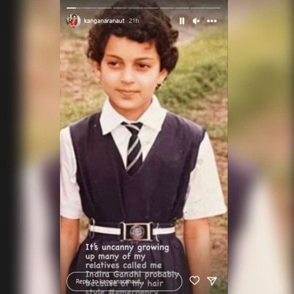 नई दिल्ली। फिल्म अभिनेत्री कंगना रनौत (film actress kangana ranaut) इन दिनों अपनी आगामी फिल्म ‘इमरजेंसी’ की शूटिंग में व्यस्त हैं। इस बीच कंगना ने अपने बचपन की यादों को (childhood memories) ताजा करते हुए दो तस्वीरें इंस्टा पर फैंस के साथ साझा की है। कंगना ने अपनी इंस्टा स्टोरी (insta story) पर पहली तस्वीर साझा करते हुए लिखा-‘ बचपन (childhood ) में मेरे कई रिश्तेदार मुझे इंदिरा गांधी कहते थे क्योंकि मेरे बाल इंदिरा गांधी जैसे थे।’ इसके साथ ही कंगना ने #इमरजेंसी का भी यूज किया है।