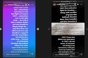 कंगना ने आगे लिखा, ‘मैंने रानी लक्ष्मीबाई जैसी शहीद पर बनी फीचर फिल्म में काम किया है. 1857 में हुई आजादी की पहली लड़ाई पर काफी रिसर्च किया. राष्ट्रवाद के साथ दक्षिणपंथ का भी उभार हुआ, लेकिन यह अचानक खत्म कैसे हो गया? और गांधी ने भगत सिंह को क्यों मरने दिया… आखिर क्यों नेता बोस की हत्या हुई और उन्हें कभी गांधी जी का सपोर्ट नहीं मिला. आखिर क्यों बंटवारे की रेखा एक अंग्रेज के द्वारा खींची गई? आजादी की खुशियां मनाने के बजाय भारतीय एक दूसरे को मार रहे थे. मुझे ऐसे कुछ सवालों के जवाब चाहिए जिसके लिए मुझे मदद की जरूरत है.’