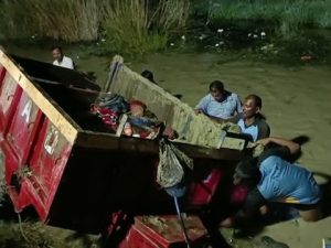 कानपुर: कानपुर के आउटर सांढ़ थाने से चंद कदमों की दूरी पर शनिवार रात दिल दहला देने वाले सड़क हादसे में 26 लोगों की मौत हो गई, जबकि 7 लोग घायल है. यह हादसा उस वक्त हुआ जब उन्नाव स्थित चंद्रिका देवी मंदिर से लौट रहे श्रद्धालुओं से भरी ट्रैक्टर ट्रॉली अनियंत्रित होकर पानी से भरे एक गहरे तालाब में जा गिरी. प्रधानमंत्री नरेंद्र मोदी और मुख्यमंत्री योगी आदित्यनाथ ने हादसे पर शोक जताते हुए मृतकों के परिजनों और घायलों के लिए मुआवजे का ऐलान किया है.