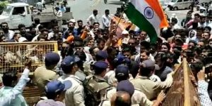 उज्जैन। राष्ट्रीय राजपूत करणी सेना (National Rajput Karni Sena) द्वारा उज्जैन पुलिस कंट्रोल रूम (Ujjain Police Control Room) के बाहर गुरुवार को अनिश्चितकालीन भूख हड़ताल की गई। हड़ताल महिदपुर थाना प्रभारी दिनेश भोजक को हटाने की मांग को लेकर की गई। करणी सेना के शैलेंद्र सिंह झाला ने बताया कि महिदपुर थाना प्रभारी दिनेश भोजक की कार्यप्रणाली पर शुरू से ही सवाल उठते रहे हैं। कई बार शिकायत के बाद भी वरिष्ठ अधिकारियों द्वारा थाना प्रभारी पर कोई कार्रवाई नहीं की गई। बुधवार को थाना प्रभारी पर कार्रवाई की मांग को लेकर करणी सेना ने एसपी कार्यालय और उज्जैन पुलिस कंट्रोल रूम के बाहर अनिश्चितकालीन हड़ताल की है।