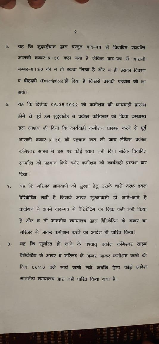 प्रार्थना पत्र में ये भी कहा गया है कि सूर्यास्त के बाद वकील कमिश्नर मस्जिद के अंदर जाने की जिद कर रहे थे, जबकि ऐसा कोई आदेश माननीय न्यायालय ने नहीं दिया है.
