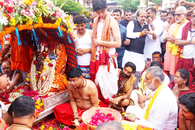 मां भुवनेश्वरी समिति ने सोमवार को गर्वनमेंट कॉलोनी स्थित मंदिर से कावड़ यात्रा निकाली जो भीकमपुर जाकर समाप्त होगी। यात्रा में भजनों पर नृत्य करते हुए कावड़ यात्री शामिल हुए। यात्रा में पाँच दिनों से अभिमंत्रित की जा रही रुद्राक्ष का शिवलिंग भी शामिल किया गया। शहर में वृद्ध महाकाल पर महाआरती के बाद भंडारे का आयोजन किया गया। यात्रा के दौरान भाजपा के वरिष्ठ नेता सुल्तानसिंह शेखावत, आलोट विधायक डॉ. चिंतामणि मालवीय, विधायक डॉ. तेजबहादुरसिंह चौहान, हिंदू जागरण मंच के प्रांताध्यक्ष भेरुलाल टांक सहित गणमान्य शामिल थे। नगर पालिका अध्यक्ष संतोष गेहलोत ने मंच लगाकर स्वागत किया। समिति के रामसिंह शेखावत व मोतीसिंह शेखावत ने बताया सुबह 7 से भीकमपुर वृद्ध महाकालेश्वर मंदिर पर रुद्राक्ष वितरण शुरू कर दिया था। शाम 5 बजे तक यह क्रम चला जिसमें लगभग 70 हजार श्रद्धालु रुद्राक्ष लेने पहुँचे। इसके साथ ही भंडारे में लगभग 15 से 18 हजार श्रद्धालुओं ने प्रसादी का लाभ लिया।