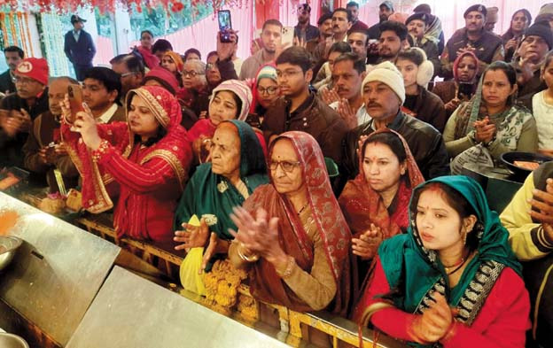 खजराना में सवा लाख लड्डुओं का भोग लगा , ध्वजा पूजन हुआ