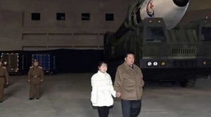 समाचार एजेंसी केसीएनए ने शनिवार को बताया कि शुक्रवार को उत्तर कोरिया ने अंतरमहाद्वीपीय बैलिस्टिक मिसाइल का परीक्षण किया। रॉयटर्स की रिपोर्ट के मुताबिक, इस मिसाइल परीक्षण की सबसे खास बात थी कि किम जोंग की बेटी भी उनके साथ मौजूद थी। वह अपने पिता का हाथ पकड़े हुए नजर आ रही है। वह सफेद जैकेट में नजर आ रही हैं।