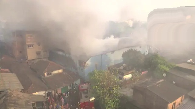 कोलकाता । पश्चिम बंगाल (West Bengal) की राजधानी कोलकाता (Kolkata) के तंगरा इलाके में शनिवार शाम चमड़े के एक कारखाने और गोदाम में भीषण आग (Fire) लग गई। ये आग इतनी तेज है कि 12 घंटे बाद भी उस पर काबू नहीं पाया गया है। 12 घंटे बाद भी कई जगहों पर आज बुझाने में कामयाबी नहीं मिली है। आग पर काबू पाने के लिए दमकल की 15 गाड़ियों को लगाया गया है। आग पास की एक इमारत में भी फैल गयी। इमारत को खाली करा लिया गया है।