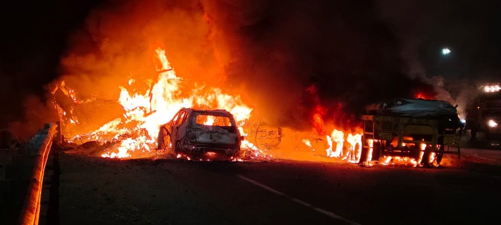 आग लगने से करोड़ों रुपये की वन संपदा नष्ट हो गई. वहीं, जंगल में लगी आग की वजह से आसपास के इलाके में धुआं फैल गया है. जंगल में लगी आग के कारणों का फिलहाल पता नहीं चल पाया है. अब आग पर काबू नहीं पाया जा सका है. जंगल में लगी आग की भीषण लपटे देखी जा सकती है. इस आग की वजह से जंगल पर खतरा मंडराने लगा है. वहीं, आग लगने से आसपास की हवा भी प्रदूषित हो गई है।