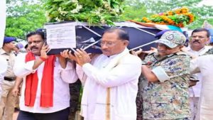 रायपुर: बीजापुर जिले के उसूर क्षेत्र में गुरुवार को हुए ऑपरेशन में शहीद हुए कोबरा बटालियन के कांस्टेबल मेहुल भाई सोलंकी को मुख्यमंत्री विष्णु देव साय और डिप्टी सीएम विजय शर्मा ने राजधानी रायपुर में श्रद्धांजलि दी. माना स्थित चौथी वाहिनी सशस्त्र बल परिसर में भावभीनी विदाई के दौरान दोनों नेताओं ने शहीद के पार्थिव शरीर को कंधा भी दिया. मुख्यमंत्री ने कहा कि “शहीद मेहुल भाई की शहादत राष्ट्र के प्रति सर्वोच्च समर्पण का प्रतीक है. हमारी सरकार 2026 तक नक्सलवाद का समूल नाश करने के लिए प्रतिबद्ध है. उनका यह बलिदान व्यर्थ नहीं जाएगा. छत्तीसगढ़ में नक्सल विरोधी अभियान अब निर्णायक दौर में पहुंच चुका है.