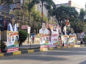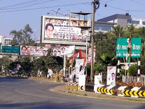 सम्मेलन स्थल के बाहर कांग्रेसियों ने पूरी सडक़ को होर्डिंग्स, बैनर और पोस्टरों से भर दिया है। कांग्रेस के महापौर प्रत्याशी संजय शुक्ला के साथ-साथ कई वरिष्ठ नेताओं के कटआउट भी लगाए गए हैं। इनमें इंदौर जिले की चुनाव चयन समिति की अध्यक्ष एवं पूर्व मंत्री विजयलक्ष्मी साधौ, कांग्रेस के प्रदेश स्तर के प्रभारी और मंत्री रहे जीतू पटवारी तथा सज्जनसिंह वर्मा के कटआउट भी शामिल हैं। एयरपोर्ट से लेकर सम्मेलन स्थल तक भी अलग-अलग इलाकों में कांग्रेसियों ने होर्डिंग्स लगाए हैं। कांग्रेस के झंडों से पूरे रास्ते को भर दिया गया है। कमलनाथ एयरपोर्ट से कार्यक्रम स्थल तक पहुंचेंगे, जहां पार्षद पद के दावेदारों ने भी अपनी ताकत दिखाते हुए अपने नेताओं के साथ-साथ अपने फोटो भी लगाए हैं। एक तरह से दावेदारों ने अपने फोटो लगाकर कमलनाथ के सामने शक्ति प्रदर्शन की तैयारी की है। वैसे बाहरी नेताओं को होर्डिंग्स में ज्यादा जगह नहीं मिल पाई है।