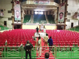 बास्केटबॉल कॉम्प्लेक्स के बाहर कांग्रेसियों का होर्डिंग्स वार
